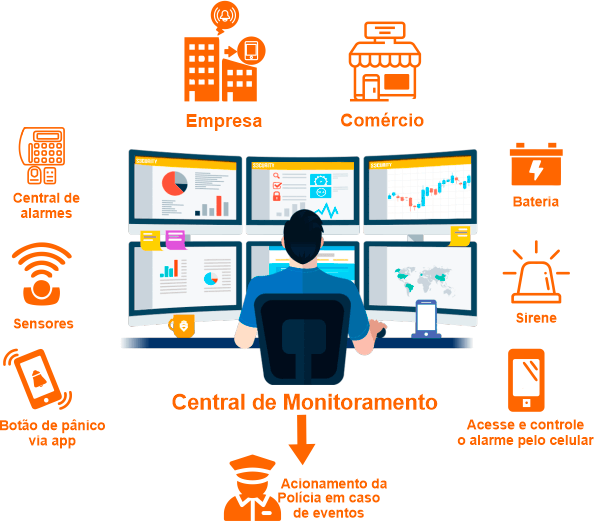Nosso serviço de monitoramento de alarme e imagens é sua linha de defesa contra intrusos. Com vigilância constante e tecnologia avançada, protegemos seu espaço 24/7. Desde detecção precoce de ameaças até resposta rápida, garantimos tranquilidade total. Deixe-nos cuidar da segurança enquanto você vive sem preocupações.
